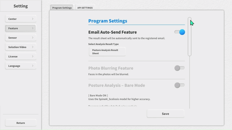 • Bare Mode ON: when severe scoliosis is visibly identified with the naked eye.